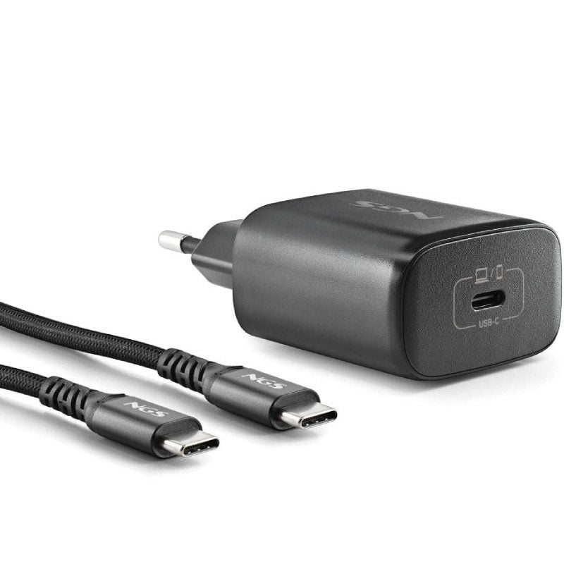 CARGADOR PARED GaN2 USB-C + CABLE 45W NEGRO NGS