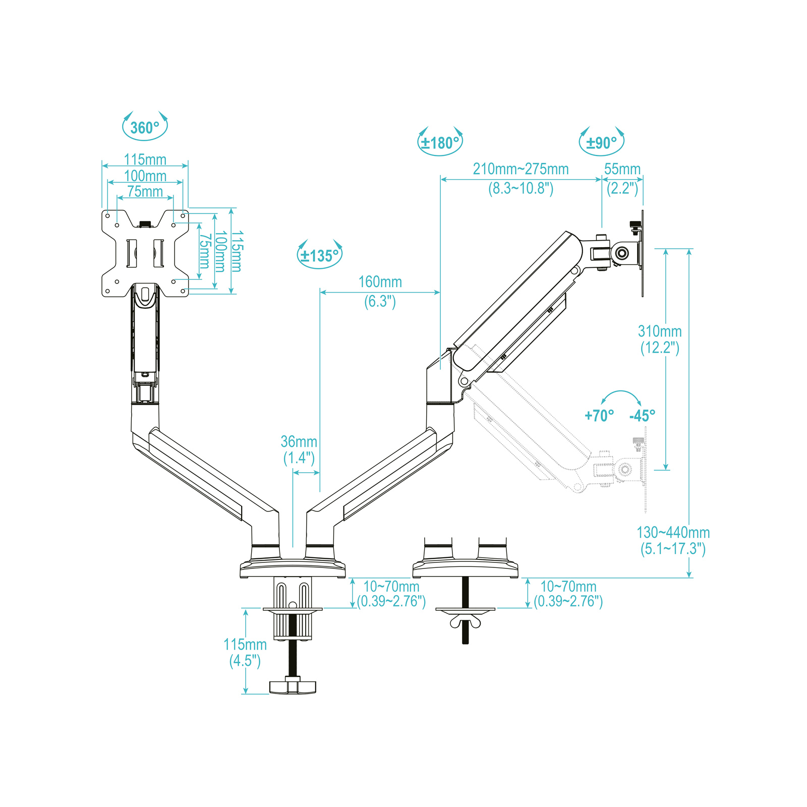 Soporte de Mesa para 2 Pantallas 13”-34”, Blanco